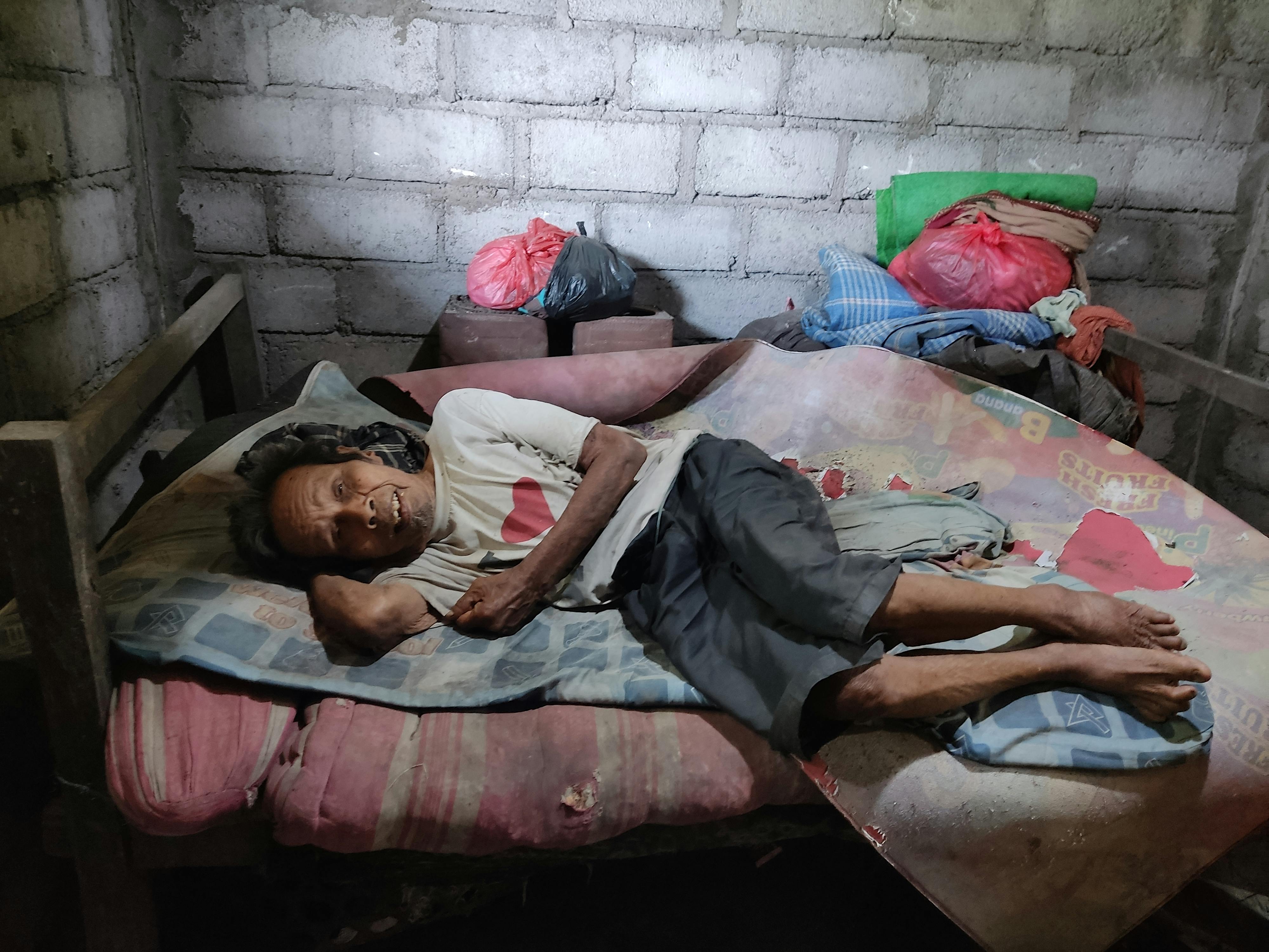 Kakek tinggal di sebuah rumah reyot yang jauh dari perkampungan. Dindingnya rapuh, atapnya bocor, dan tempat tidurnya hampir jebol. Yang lebih memilukan, kasurnya mengeluarkan bau busuk karena kakek sudah tak lagi kuat menjemurnya. Di tengah segala keterbatasan ini, beliau harus terus berjuang sendiri.